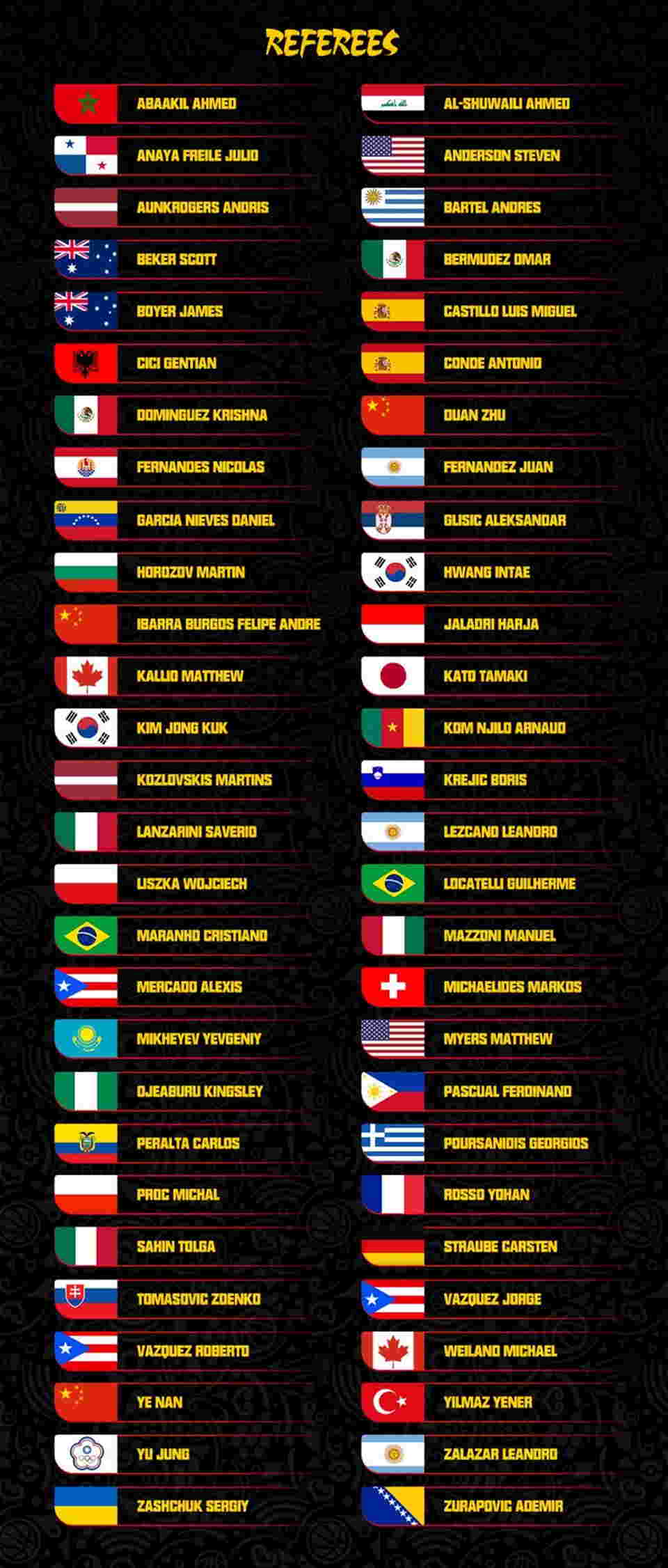 56 арбитров представляют 40 стран. Судьи Кубка мира в возрасте от 26 до 49 лет имеют опыт работы в качестве арбитров ФИБА длительностью в среднем 9,5 лет. Украинский рефери Сергей Защук вошел в число арбитров, которые получили назначение на матчи грядущего чемпионата мира по баскетболу. Кубок мира в Китае пройдёт с 31 августа по 15 сентября.