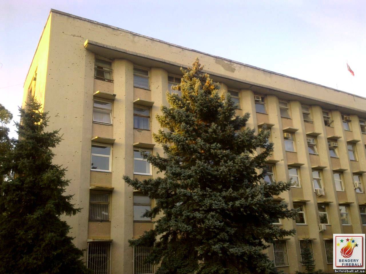 Нащ белый дом - исполком. На стенах видны следы войны 1992 года.